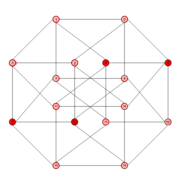 Figure 2: Dominating set 6,7,8,9 on Q4