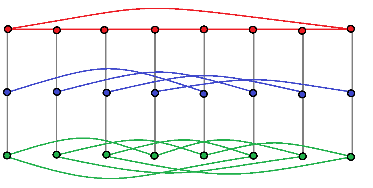 Label the vertices of this picture to show an automorphism that maps a red vertex to a green one.